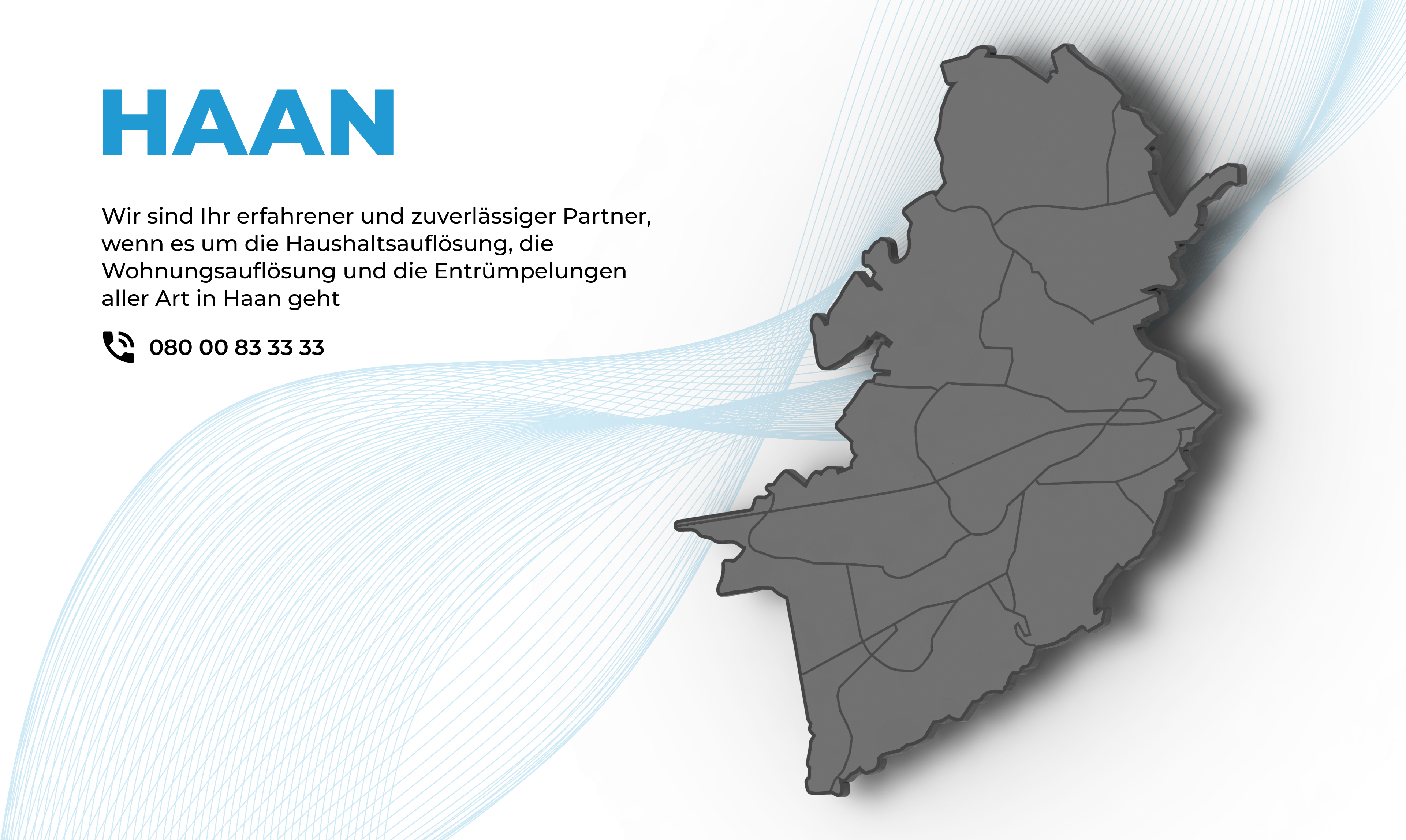 Rhein-Haushaltsauflösung unterstützt Sie professionell bei allen Arbeiten rund um Entrümpelung, Firmenauflösung und Haushaltsauflösung mit Wertanrechnung in Haan und Umgebung. Unsere Philosophie ist es, jeden Auftrag für Firmen oder Privathaushalte schnell und mit einem unverbindlichen Besichtigungstermin und einem Angebot zum festen Preis zur Ihrer Zufriedenheit auszuführen.