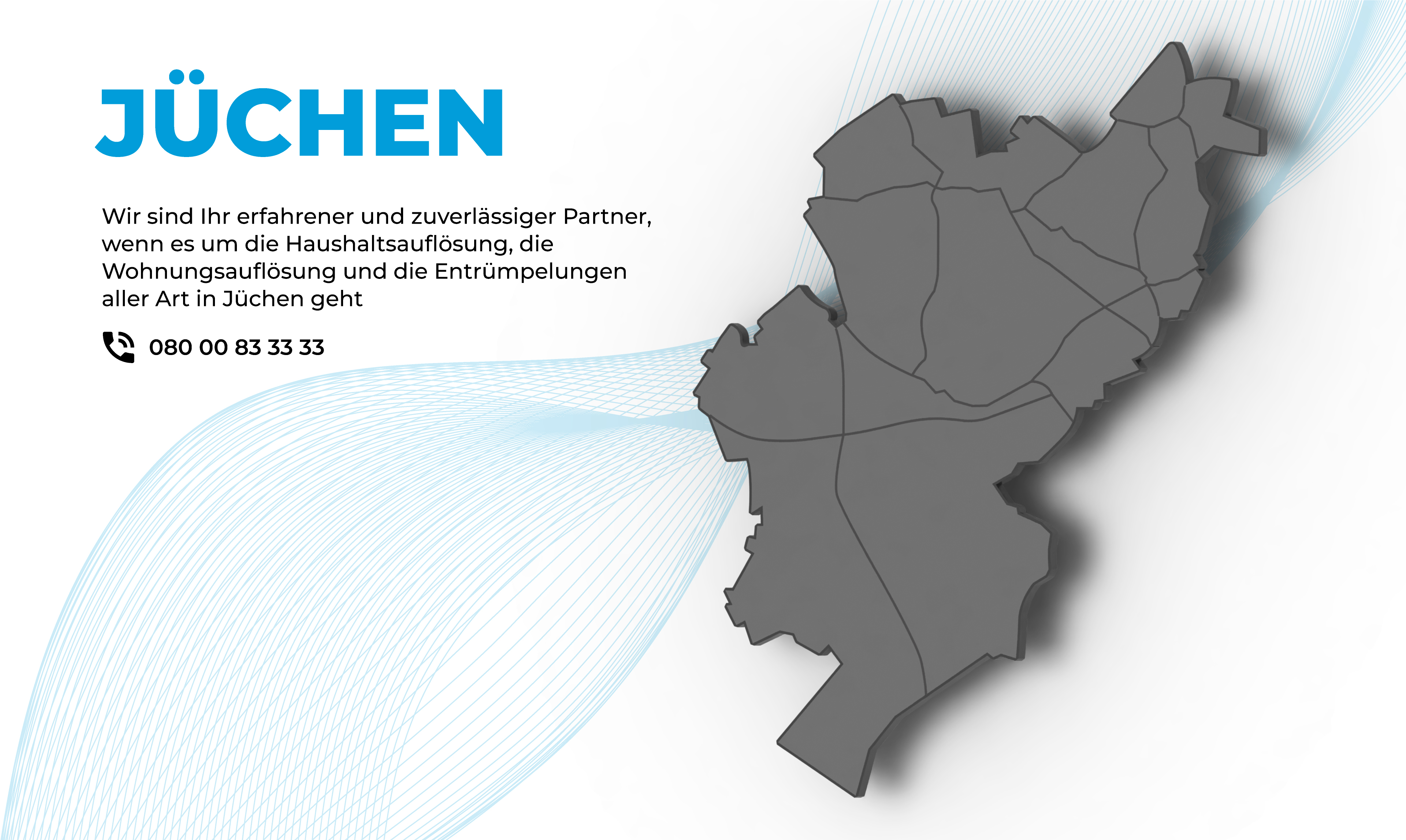 Rhein-Haushaltsauflösung unterstützt Sie professionell bei allen Arbeiten rund um Entrümpelung, Firmenauflösung und Haushaltsauflösung mit Wertanrechnung in Jüchen und Umgebung. Unsere Philosophie ist es, jeden Auftrag für Firmen oder Privathaushalte schnell und mit einem unverbindlichen Besichtigungstermin und einem Angebot zum festen Preis zur Ihrer Zufriedenheit auszuführen.